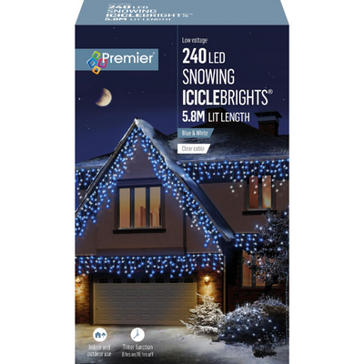 Premier 240 LED Snowing Icicle Brights (Blue & White) - 5.8M Lit Length