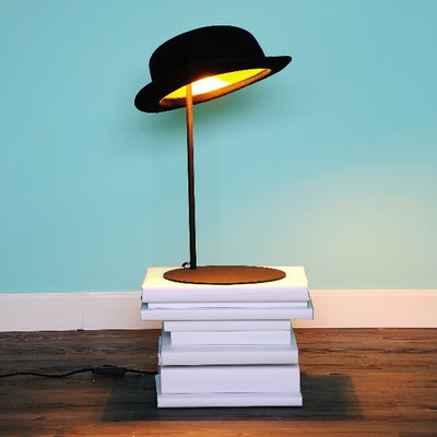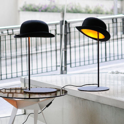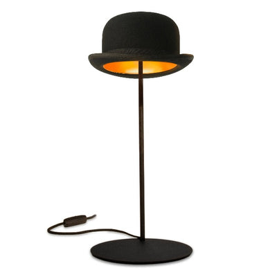 A classic British master piece designed by Jake Phipps and manufactured by Innermost, The Jeeves Bowler Hat Table Lamp with its minimal black steel base supporting the classic hand-made wool felt bowler hat coupled with a stunning gold coloured interior.
