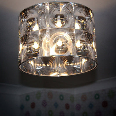 Showing off with it's clear optical polycarbonate lenses, this retro inspired lamp shade is versatile and can be placed or hung wherever you desire. Adding sophistication to any interior decor.