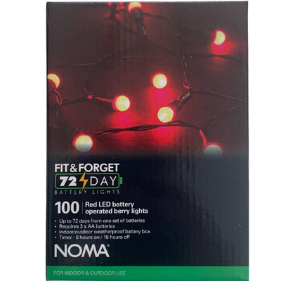 Noma 100 Fit & Forget Battery Operated Red Berry Lights