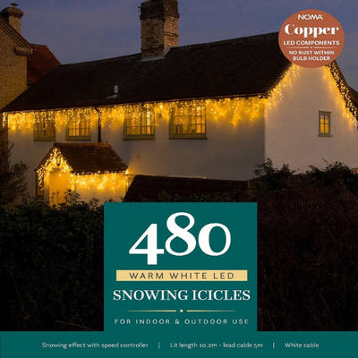 Noma 480 LED Warm White Snow Icicle Lights - 10.2M Lit Length