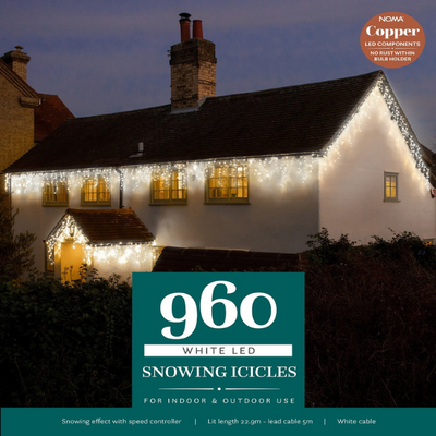Noma 960 LED White Snowing Icicle Lights - 20.6M Lit Length
