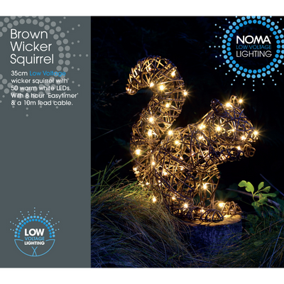 Made from brown wicker on a powder coated frame with 50 warm white LED's this is one stylish squirrel you won't be shooing away. With a 10 metre lead cable you may wish to re-position this cheeky addition time and time again.